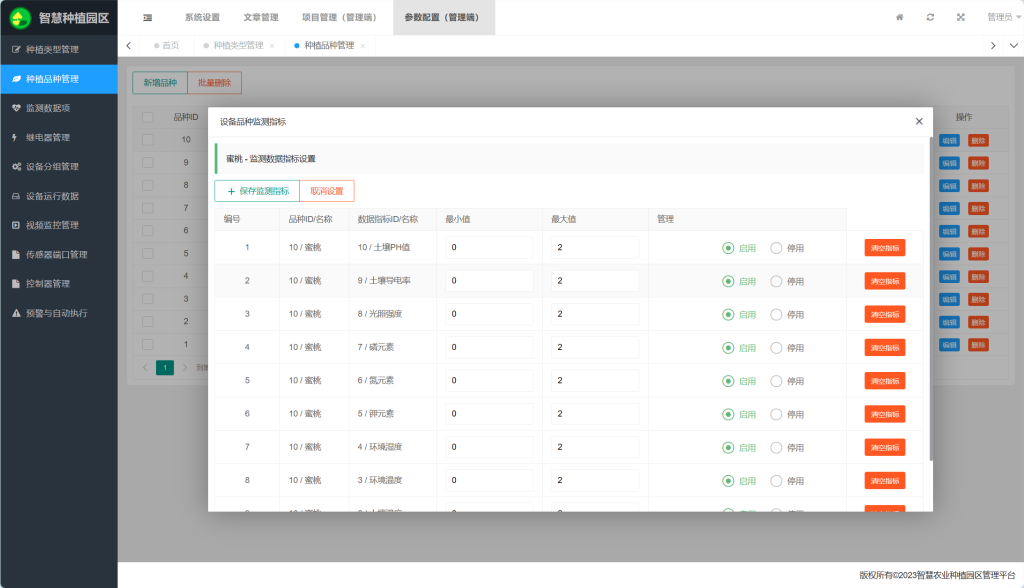 5、可定制化:用户可根据自身农业生产的特点和需求,自定义预警规则、种植计划、设备控制策略等。
