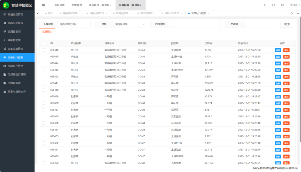 1、数据全面:覆盖农业生产从种植到收获、从环境监测到设备管理的各个环节,全面采集和记录各类数据。