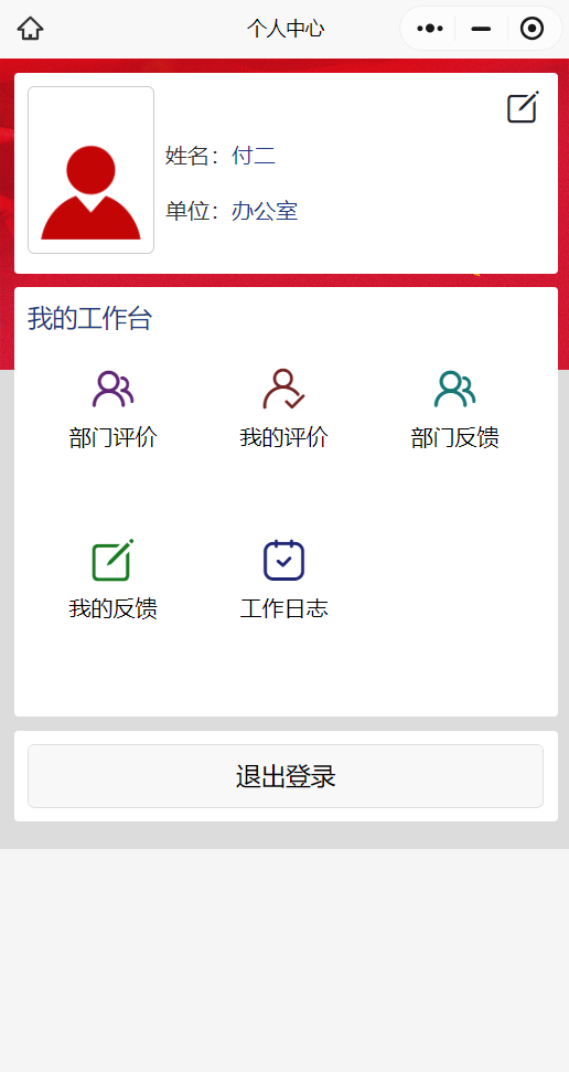 11、小程序端功能:支持内部用户登录,可查看基本信息、修改密码,展示控制台信息,包括部门评价、我的评价、部门反馈、我的反馈和工作日志等,还能进行工作日志添加、保存、提交及批量提交操作。