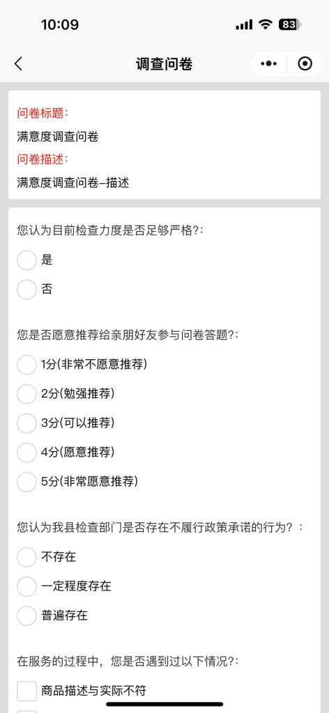 9、调查问卷管理:可管理问卷基本信息、题库和问卷记录,能创建、编辑、删除问卷,关联题目,设置发布状态,还可添加、编辑、删除题目,配置选项,查询和导出问卷记录。
