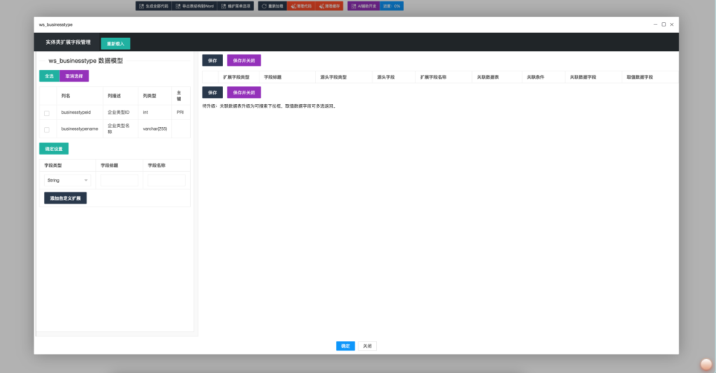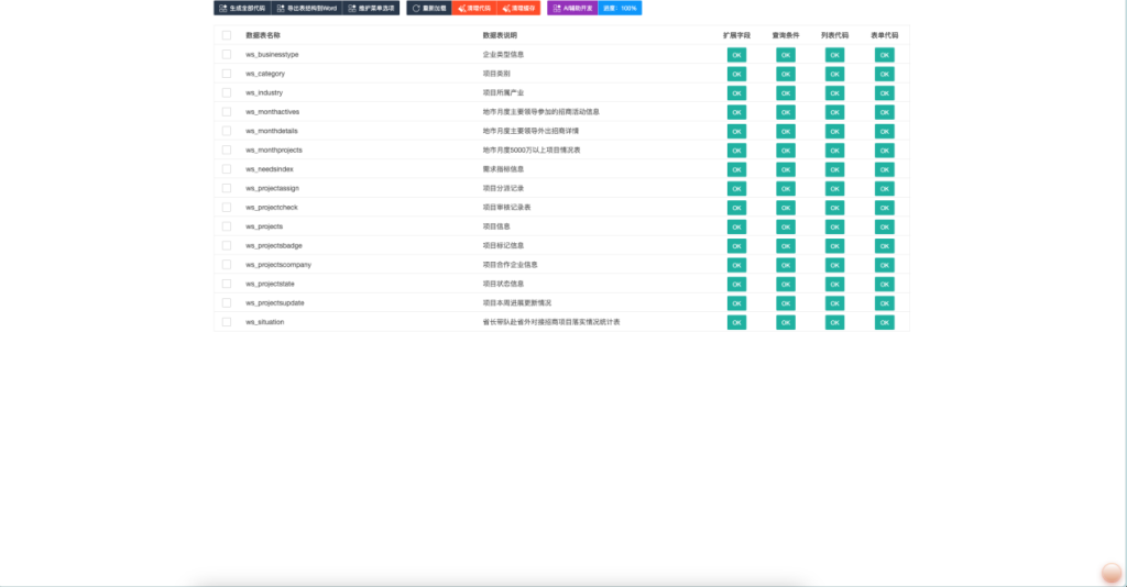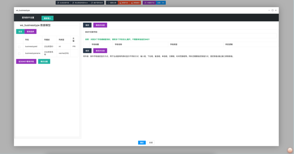 业务逻辑生成:根据数据关联和业务规则,生成服务层代码(如用户权限验证、订单状态更新)和数据访问层代码(如 MyBatis Mapper 文件),实现增删改查等基础功能。