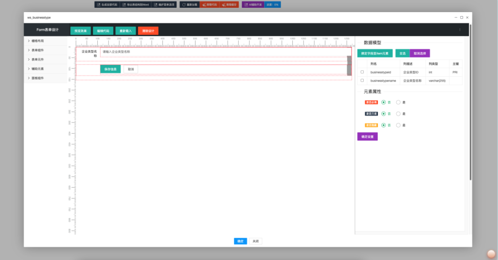 UI 界面生成:基于表单设计结果,生成包含表单元素、布局、交互逻辑的前端代码,支持 Web(HTML/CSS/JavaScript)和移动应用(Flutter/React Native),例如通过拖拽生成用户注册表单并自动绑定后端数据模型。