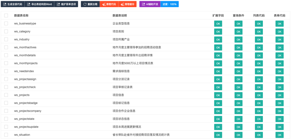 自动化生成:相比传统手工编码,基础代码生成效率提升 50%-75%,例如一个包含用户管理、订单管理的模块,手工开发需 2 周,平台仅需 2 小时完成代码交付。